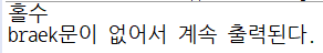 switch문에서 조건문을 빠져나오려면 break문이 있어야 한다는 것을 알 수 있다.