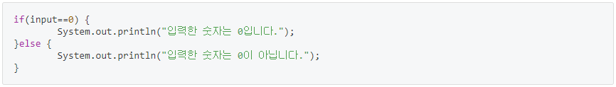 변수 input이 0이면 "입력한 숫자는 0입니다." 가 출력되고