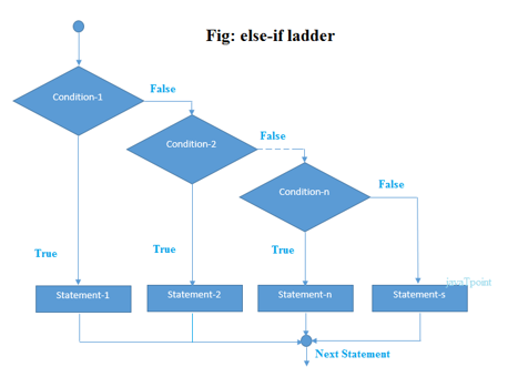 → 조건식 1부터 순서대로 평가하여 참인 조건식을 만나면 해당 블럭 { } 만 수행하고 ' if - else if 문 ' 전체를 벗어난다.