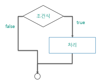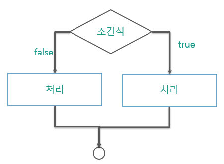 조건식의 결과에 따라 이 두 개의 블럭 { } 중 한 블럭 { } 의 내용이 수행되고 전체 if 문을 벗어나게 된다.