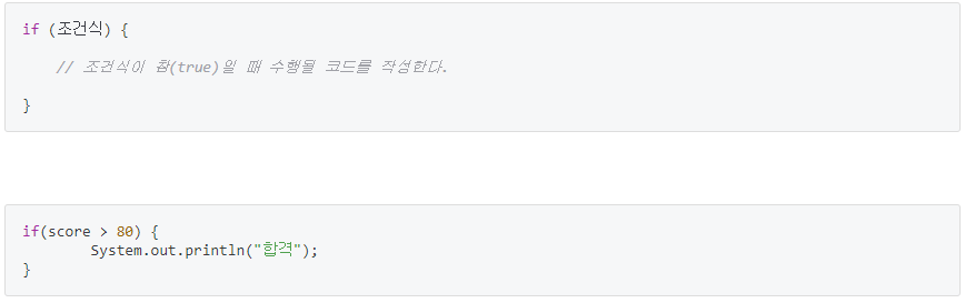 - 조건식이 참이면 실행하기 위한 조건문이다.