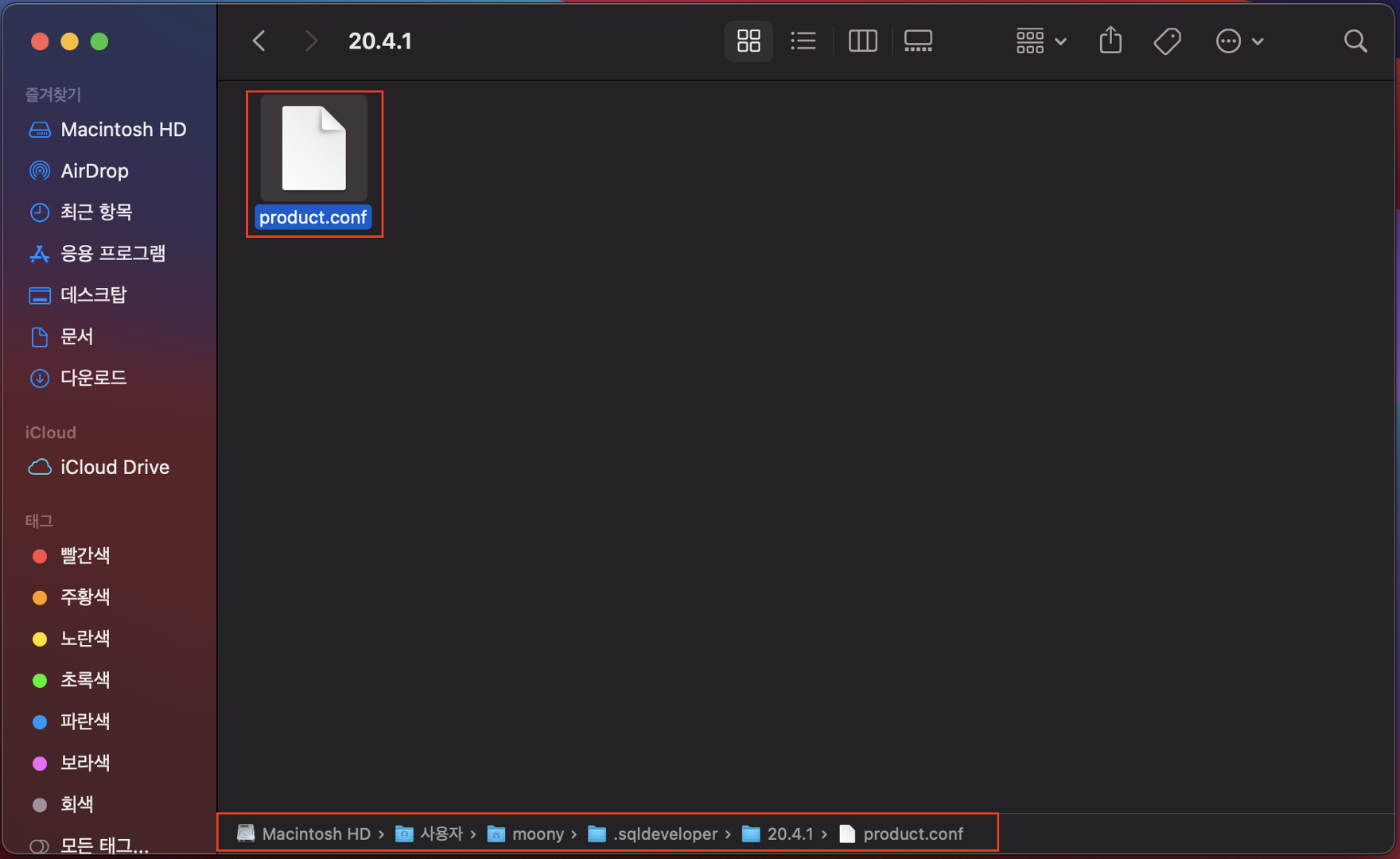 3-3 .sqldeveloper > 버전(20.4.1) > pruduct.conf 파일 오픈