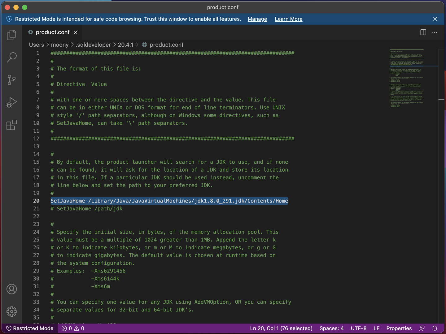 3-3 .sqldeveloper > 버전(20.4.1) > pruduct.conf 파일 오픈