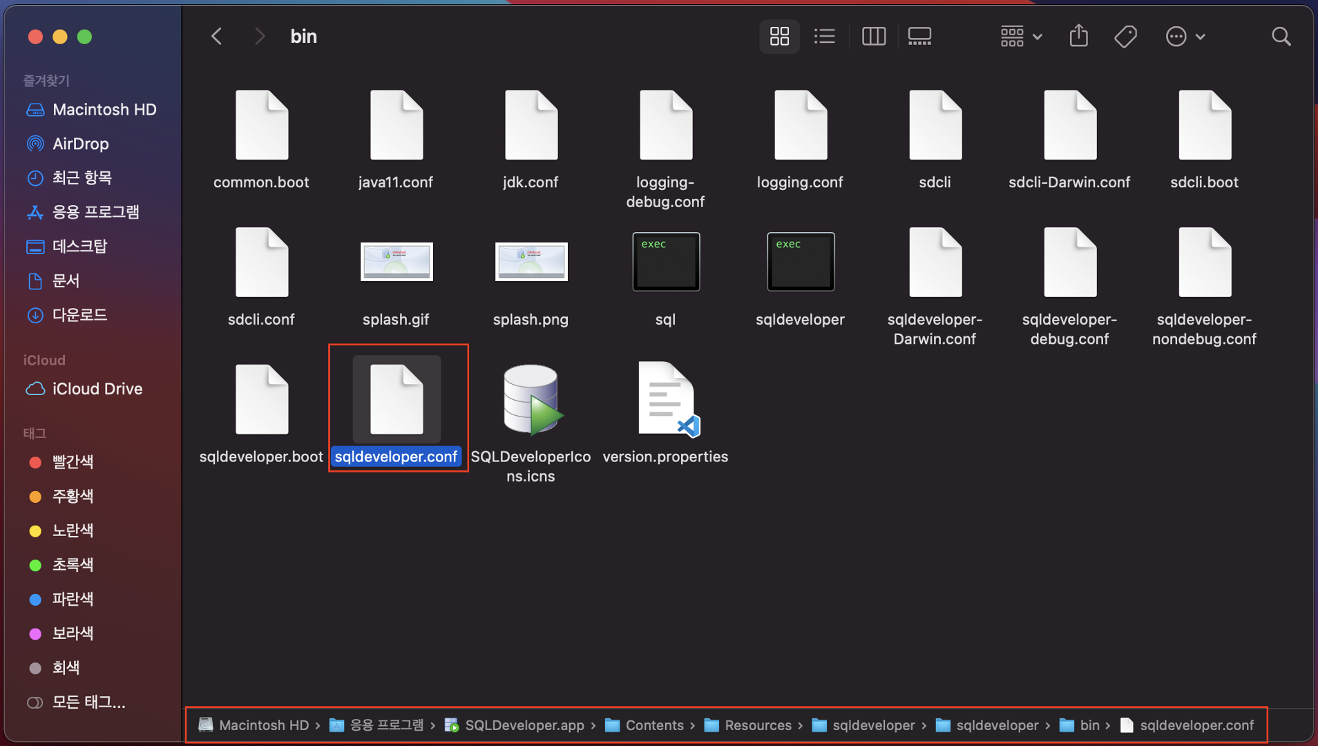 2-2 SQL Developer 패키지 안에서 Content > Resources > sqldeveloper > sqldeveloper > bin > sqldeveloper.conf 파일 열기