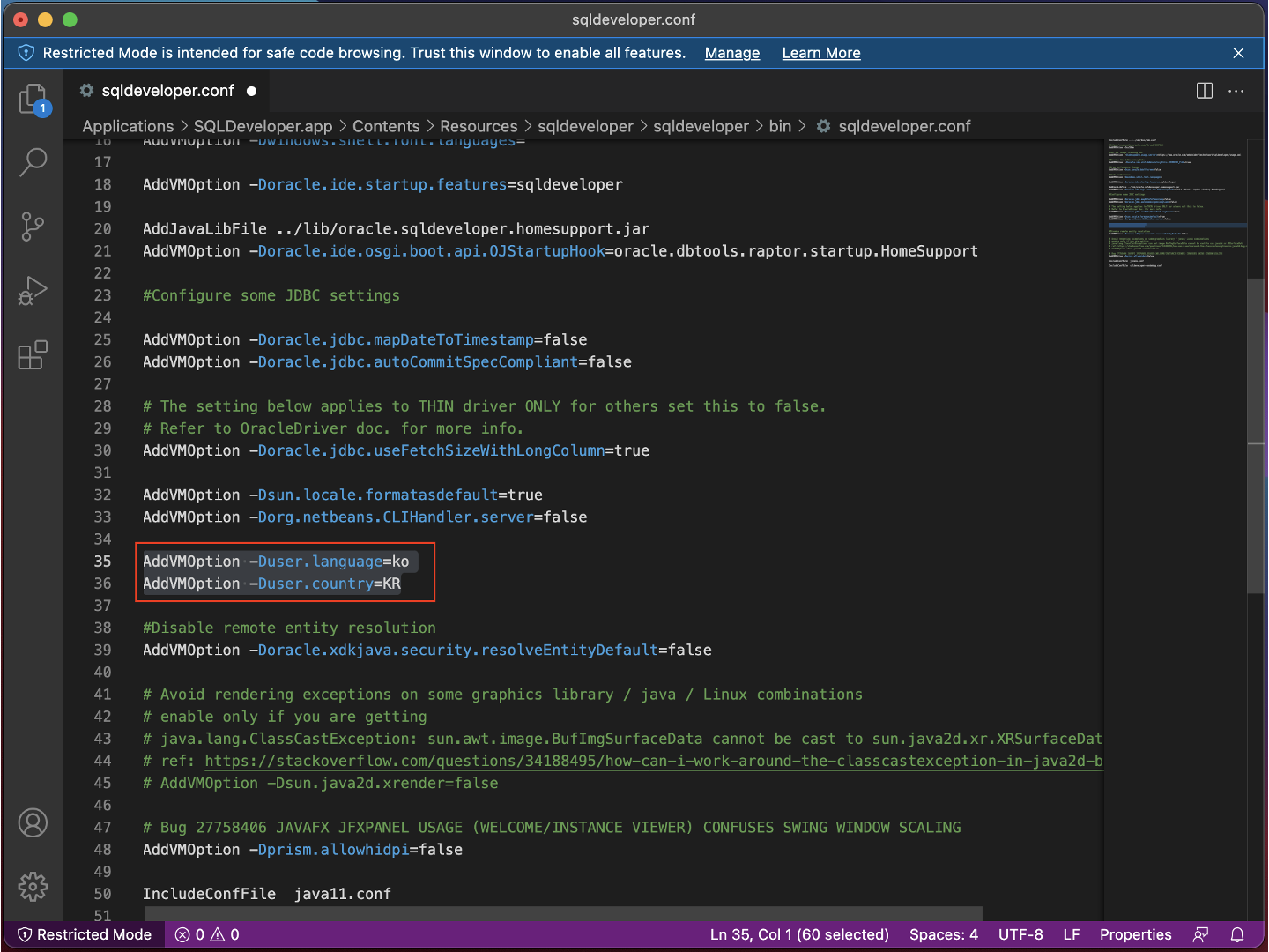 2. SQL Developer의 locale 정보를 직접 수정하는 방법