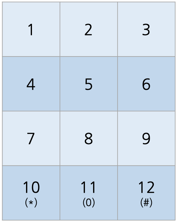 1️⃣ 우선 [ * ] [ 0 ] [ # ] 을 [10] [11] [12] 로 연속된 수를 전제로 시작한다.