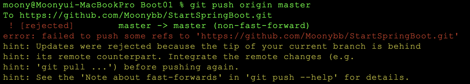 명령어를 통해 push를 하던 도중 아래와 같은 오류 발생