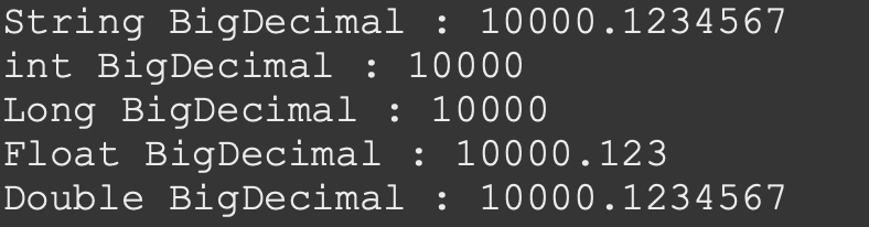 System.out.println("String BigDecimal : " + bd.toString());