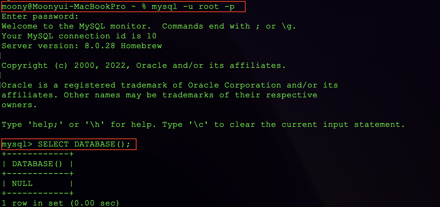 1. mysql접속 후 SELECT DATABASE();