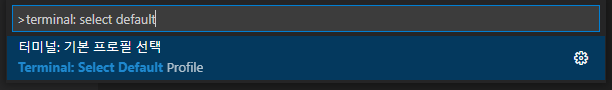 이럴 경우 ctrl + shift + p 터미널의 기본 프로필을 아래와 같이 변경해주고 터미널 닫았다가 다시 실행한다.