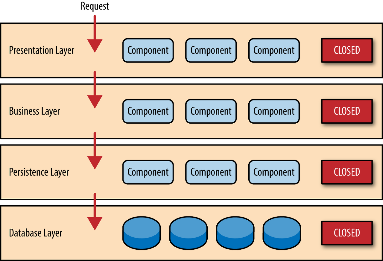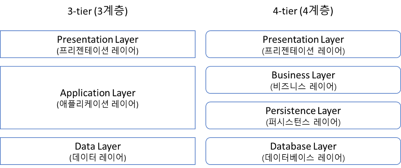 - 아키텍처의 컴포넌트들은 각각 어플리케이션의 특정한 역할을 수행하도록 가로로 나누어져 계층을 이룬다.