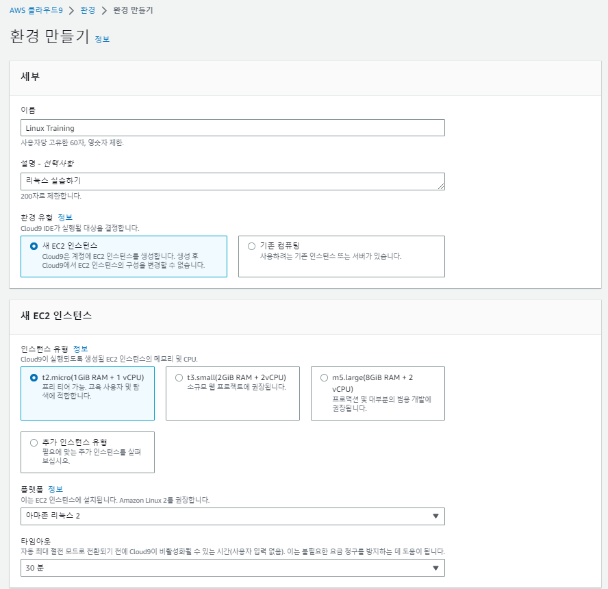 2. cloud9 환경 구축 설정