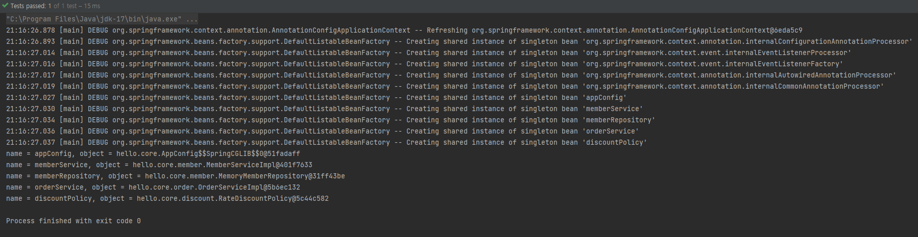※ 위 테스트에서 사용한 AppConfig Class를 사용하지 않고 내부 클래스로 테스트 환경을 만들었음