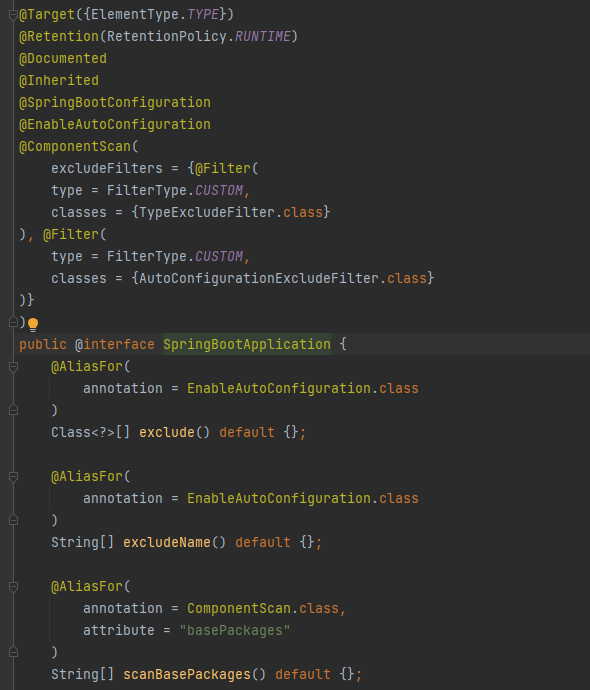 여기서 @ComponentScan 어노테이션을 통해 Bean을 등록해준다고 하는데, 사실상 @ComponentScan을 직접 사용하지 않아도 Bean으로 잘 등록될 수 있는 이유는 @SpringBootApplication 내부에서 ComponentScan이 기본 패키지에 대해서 설정되어 있기 때문이다.