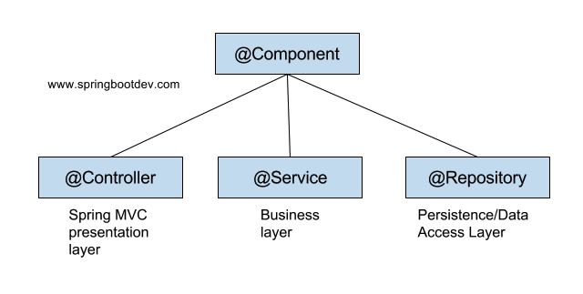 @Controller, @Service, @Repository 어노테이션들은 @Component 어노테이션의 구체화된 형태이다.