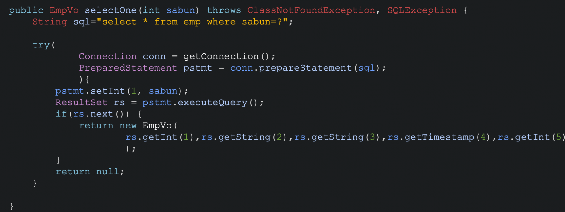 타겟에 테스트 할 것을 담아놓고 메서드 호출하여 타겟의 사번 값을 들고 가 서로 비교를 하여 equals true가 나오면 테스트 true