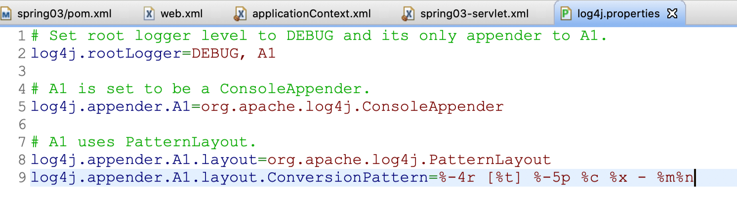 log4j.appender.A1.layout=org.apache.log4j.PatternLayout