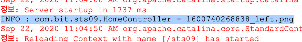 해서 파일 업로드를 하고 다운로드 클릭 시 로거메시지로 확장자를 포함하여 출력되는 것을 볼 수 있음.
