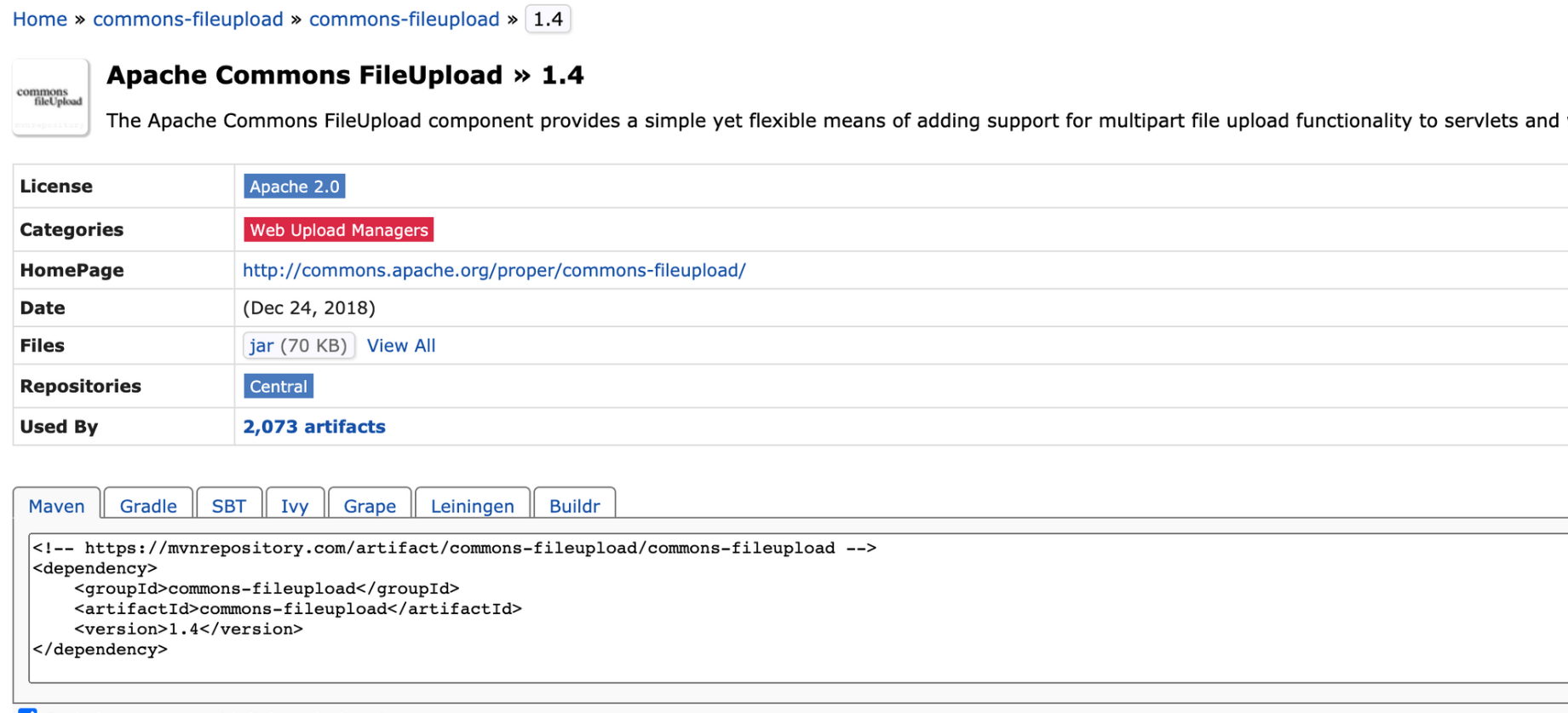 Maven Repository: commons-fileupload » commons-fileupload » 1.4