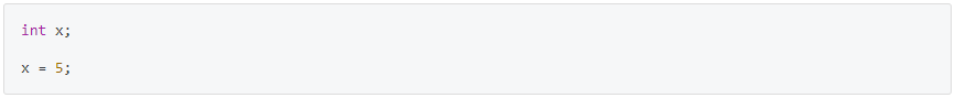 위는 정수를 넣을 변수를 int x로 선언하고 변수 x에 5값을 대입연산자를 통해 저장한 것이다.