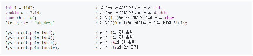 변수를 선언할 때 변수에 저장할 값의 종류에 따라 변수의 타입을 선택해야 한다.