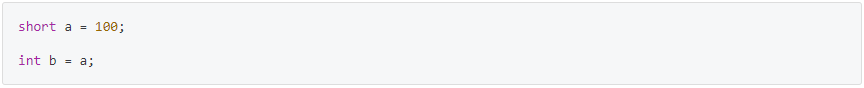 명시적 형 변환이라고도 하며 값을 충분히 담을 수 있으면 손실이 일어나지 않는다.