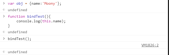 먼저 var obj = {name : 'Moony'}; 로 obj의 값에 담아놓고 bindTest() 함수로 인해 this.name 값을 출력 시 undefined 이라고 뜨게 됩니다.